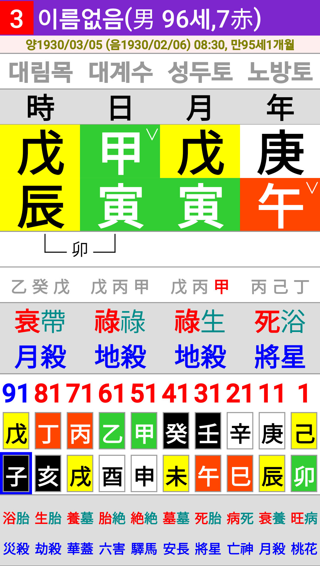 사주 명식(1930년 3월 5일 08:30, 남자)
