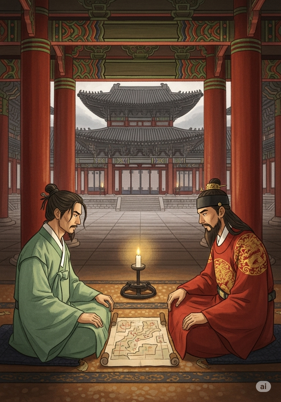 먼 옛날, 조선이라는 나라에 한명회라는 이름의 선비가 살고 있었습니다. 그는 뛰어난 지혜를 가졌지만, 어지러운 나라를 보며 자신의 뜻을 펼칠 기회를 얻지 못해 안타까워했습니다. 그는 더 강하고 안정된 나라를 꿈꾸었습니다.