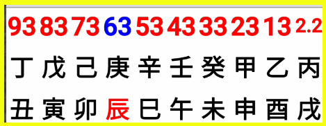 대운(大運)의 흐름: 5.9세부터 10년 주기로 丙戌, 乙酉, 甲申, 癸未, 壬午, 辛巳... 순으로 흐름